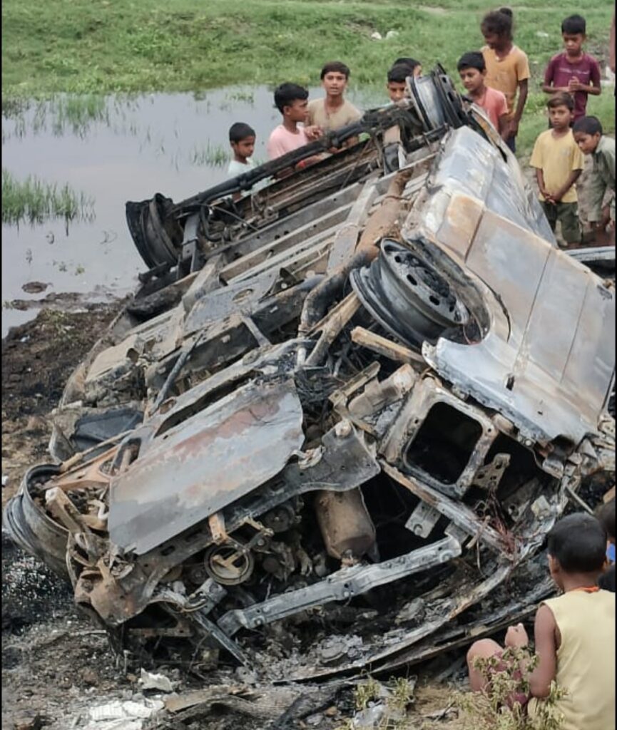 Bhagalpur News: सड़क हादसे में धधकती आग में स्वाहा हुई एम्बुलेंस, ग्रामीण बने देवदूत » Recent Bihar